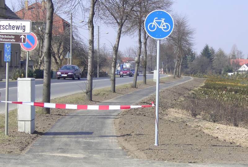 Der neue Radweg entlang der Meißner Straße kurz vor seiner offiziellen Eröffnung am 24.03.2005 ist Motiv des aktuellen Bildes der Woche. Das neue ca. 200 Meter lange Stück Radweg beginnt am östlichen Ortseingang Zitzschewigs und verläuft bis zum Dammweg.